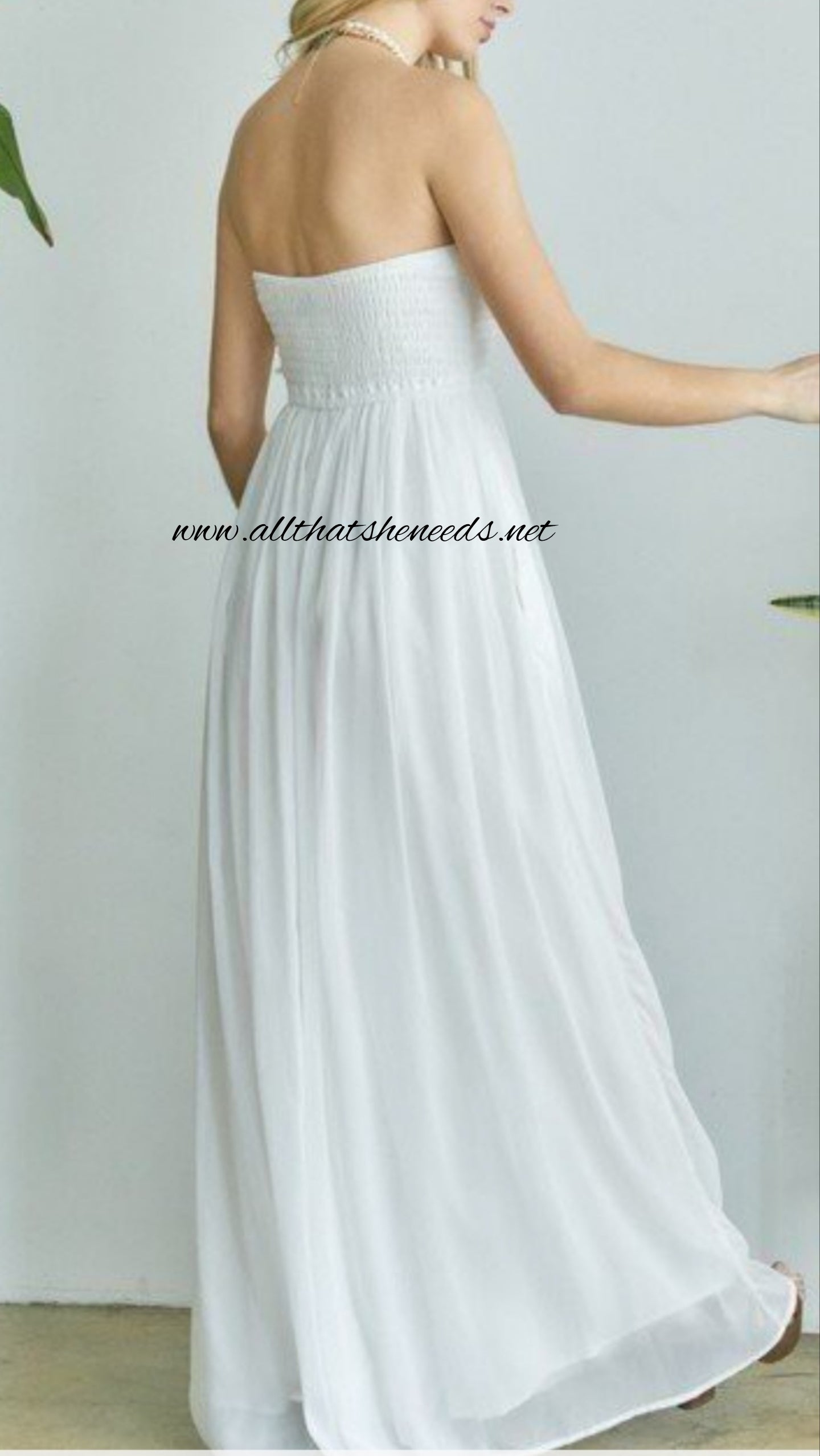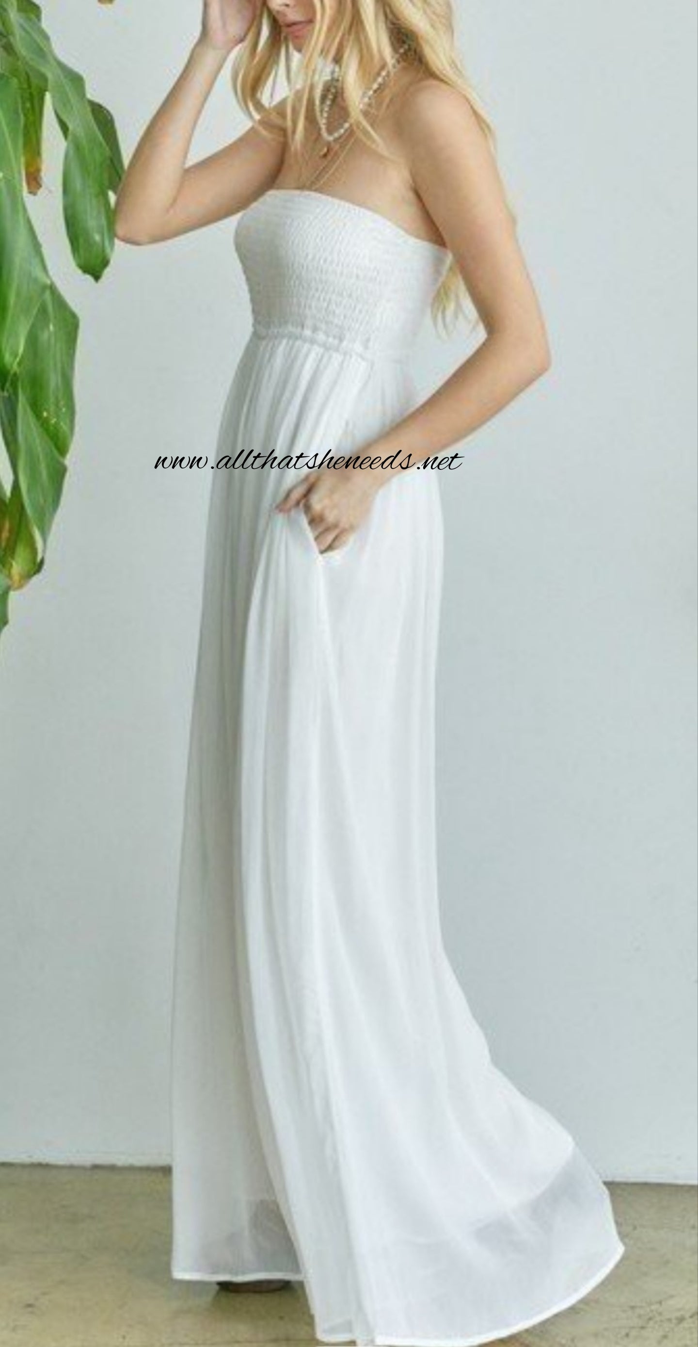 Smocked, tube, wide leg, chiffon, jumpsuit.